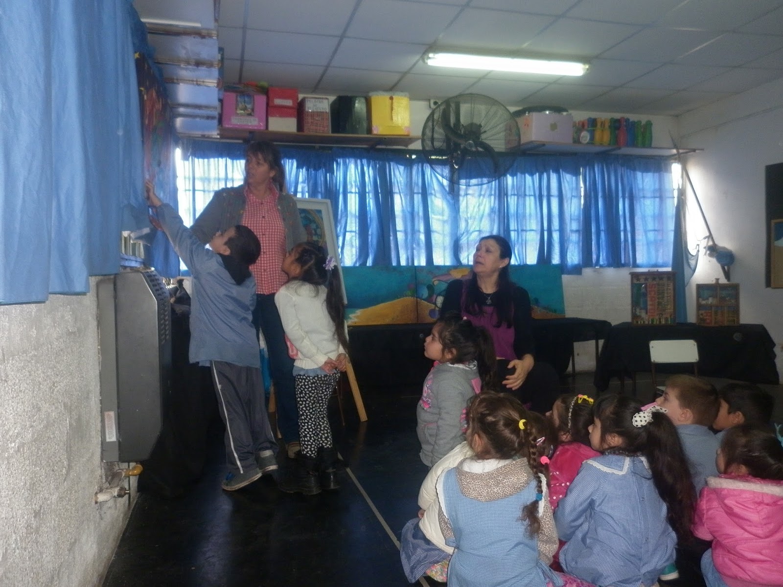 El agradecimiento enorme a Gabriela Potocar por la convocatoria y a todo el personal del Jardín 921 (docentes y auxiliares) que nos recibieron con tanta calidez. En esta presentación, un lugar especial tienen los nenes de las salitas de 2, 3 4 y 5 años... que con tanto interés y participación, disfrutaron y nos hicieron disfrutar a nosotras... Las imágenes que iban descubriendo en cada cuadro..., y la palabra hecha cuento que fue escuchada con atención, fueron las protagonistas de esta jornada.... y nosotras, solamente sus transmisoras. Gracias a todos por esta vivencia compartida.